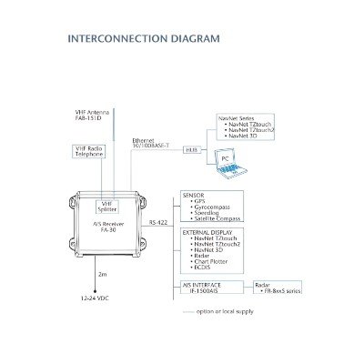 The Furuno FA-30 is a compact, dual-channel AIS (Automatic Identification System) receiver designed to monitor vessel traffic by receiving AIS signals from nearby ships and coastal stations. It is a receive-only device, meaning it does not transmit your vessel’s information.