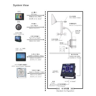 The AM706E acts as the primary bridge display, featuring a 7-inch high-brightness color LCD. It is capable of showing both Relative Wind (measured relative to the ship) and True Wind (calculated by integrating data from GPS, Gyro, or Speed Log). The unit is built for the harsh marine environment, with high-resolution digital and analog (compass-style) visual reporting.
